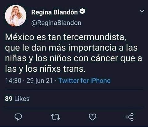 Regina Blandón desmiente tweet contra lo niños con cáncer