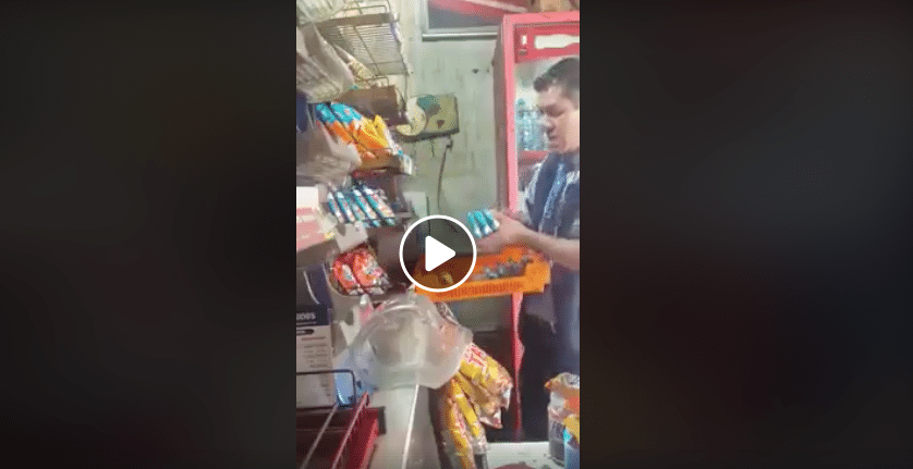 Indigna en redes sociales un video que muestra a un repartidor de Bimbo robando producto a un señor tendero de la tercera edad.