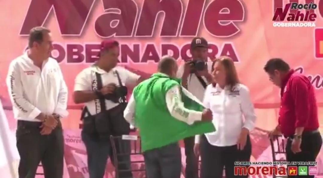 Rocío Nahle, candidata de Morena a la gubernatura de Veracruz está envuelta en una nueva polémica, y que fue captada ordenando a un aspirante a diputado que se quitara un chaleco del Partido Verde, pese a que es abanderado de dicho instituto poítico.