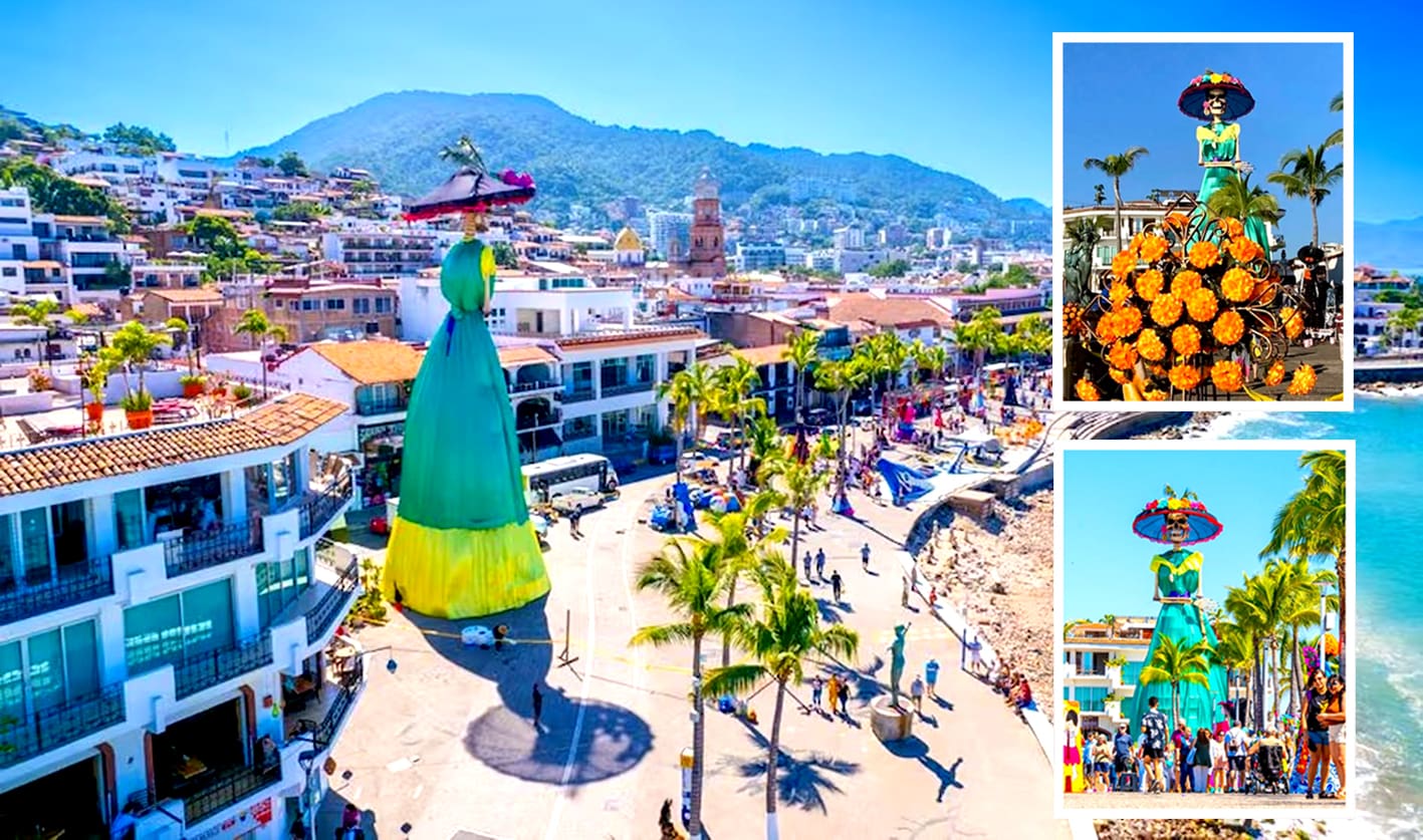 Con un vestido verde con amarillo, de enorme sombrero y 28.15 metros de altura, la Catrina Monumental mirando al océano Pacífico ya adorna el malecón de Puerto Vallarta, como parte del Festival del Día de Muertos denominado “Recuérdame”.