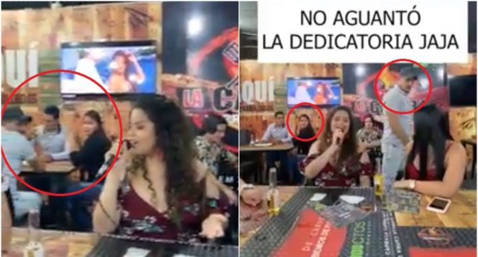 Una joven fue captada en video justo al momento en que canta a su ex novio en un karaoke ‘Te dejo en libertad’ y que se difundió en redes sociales.