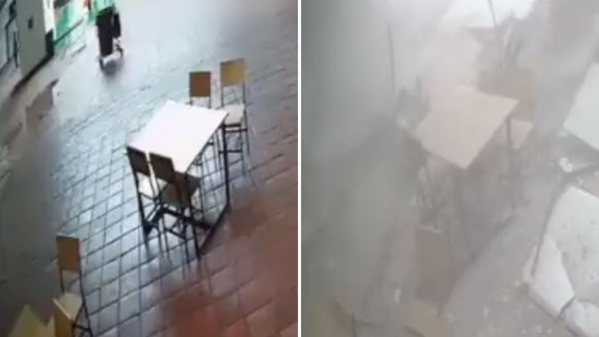 En un video se ve cómo todo está en orden, pero de repente el techo se desploma provocando que cientos de personas salgan corriendo.