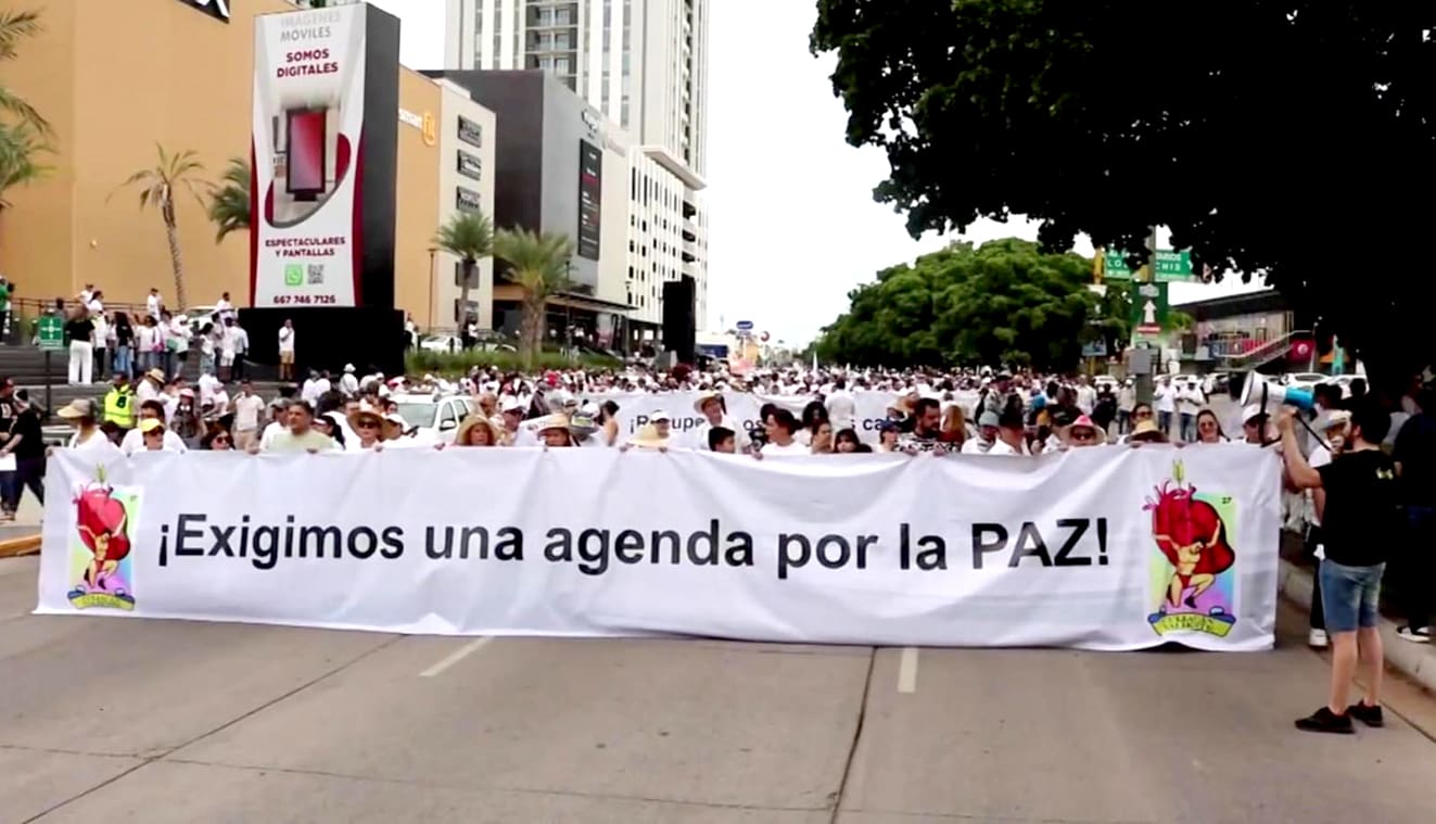 Vestidos de blanco y con pancartas, cientos de culiacanenses salieron a exigir el fin de la violencia, que azota al estado los últimos 20 días con saldo de más de 122 muertos y 164 desaparecidos en una guerra interna entre las facciones del Cártel de Sinaloa.