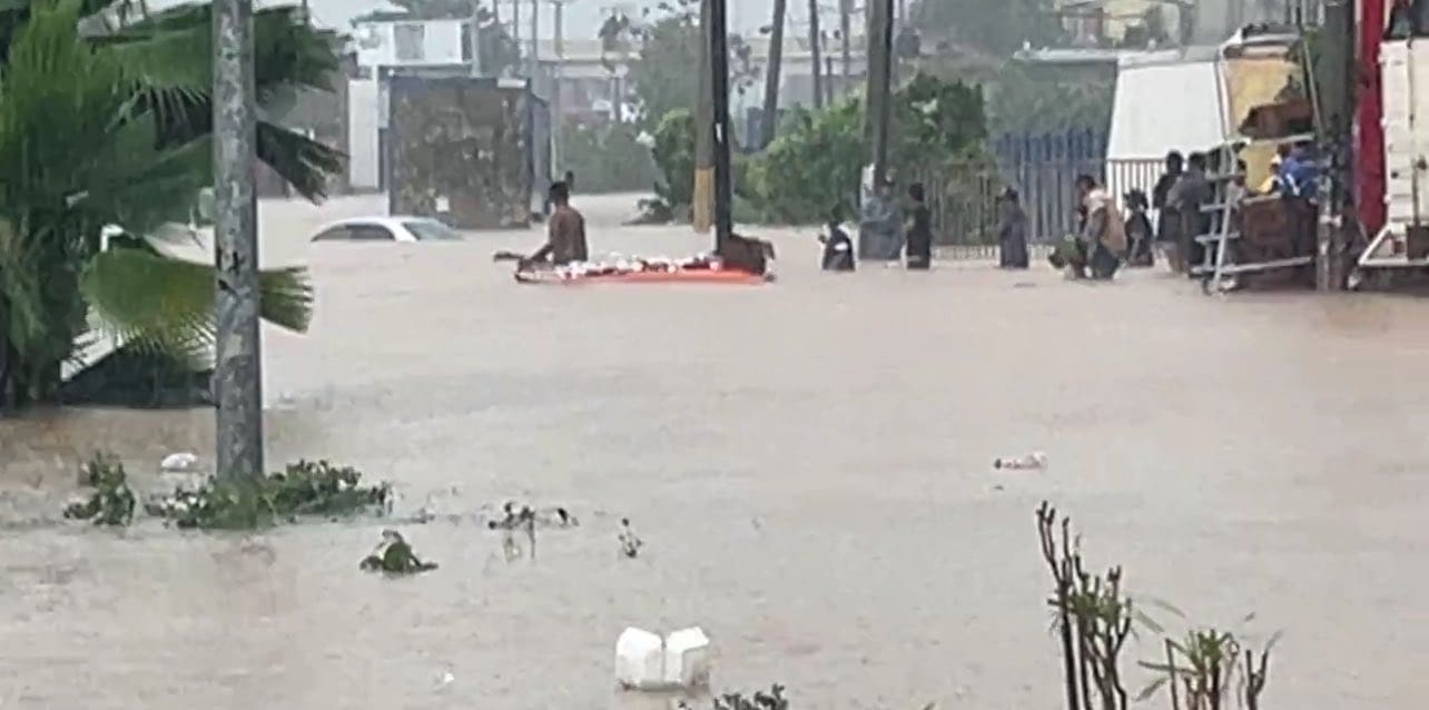 A través de redes sociales, se ha viralizado un video que muestra cómo el pasado martes 24 de septiembre, al menos 15 personas caminan sobre un nivel alto de agua, provocado por las inundaciones, para llegar a una tienda.