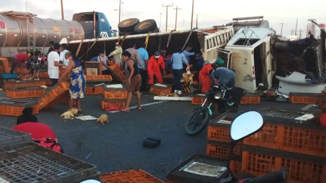 Pobladores de las zonas aledañas al lugar del accidente, así como personas que pasaban por el lugar comenzaron a llevarse los pollos.