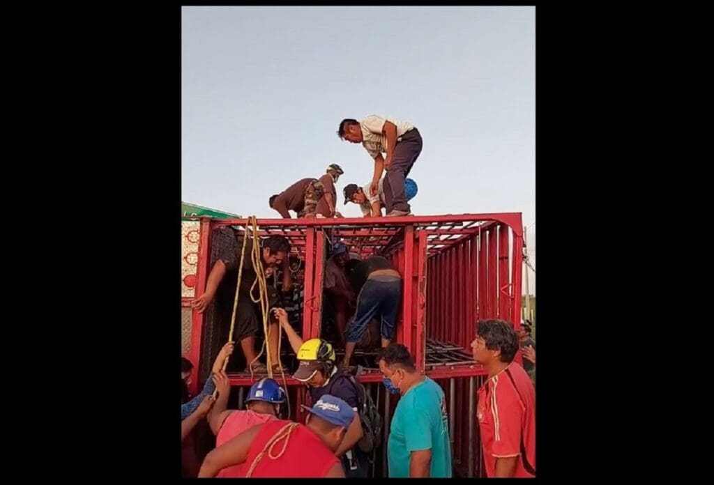 Más tarde llegaron elementos de la Policía Municipal de Hecelchakán, aunque nada pudieron hacer para detener a las cerca de 300 personas que hicieron actos de rapiña robándose a los cerditos vivos o muertos, pues algunos los destazaron en el lugar a los animales que murieron en el accidente.