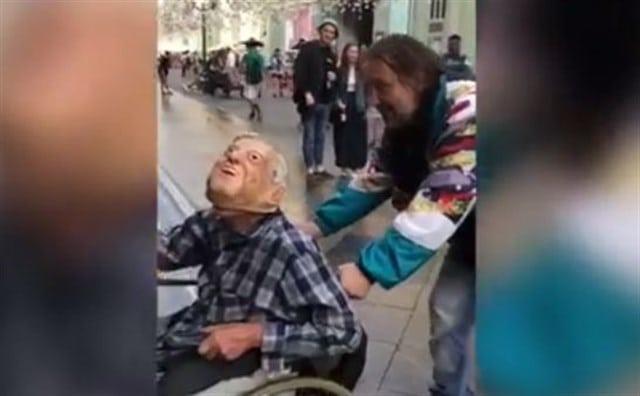 En el vídeo se lograba ver que el discapacitado de nacionalidad rusa intenta tomarse una foto con la máscara puesta, cuando el mexicano se acerca, carga la silla y lo tira, mientras ofende al anciano y después se va.