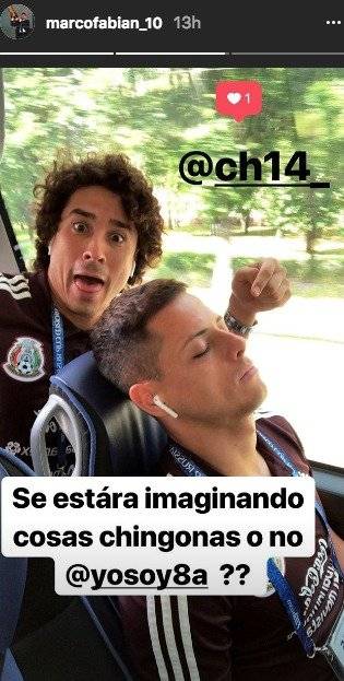 Marco Fabián compartió en Instagram Stories una foto donde aparece Javier Hernández durmiendo mientras Ochoa hace un gesto.