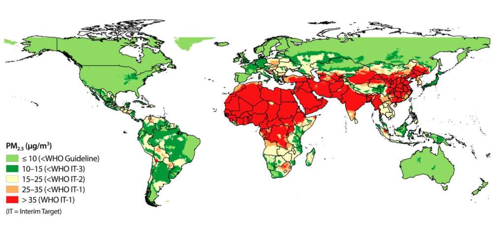 Los niveles de PM2.5 (partículas en suspensión de menos de 2.5 micras), que es considerado el mejor indicador de contaminación, se encuentra en aumento en todo el mundo, rebasando los máximos establecidos por la OMS.