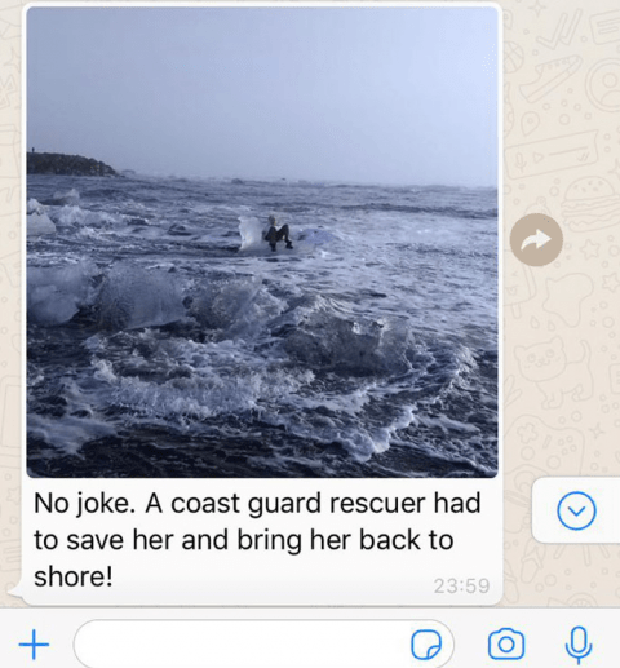 La instantánea fue compartida en redes sociales por su nieta, Catherine Streng, una joven maestra de 24 años, quien escribió en su cuenta de Twitter: “Mi abuela casi se pierde hoy en el mar de Islandia. LMAO”.