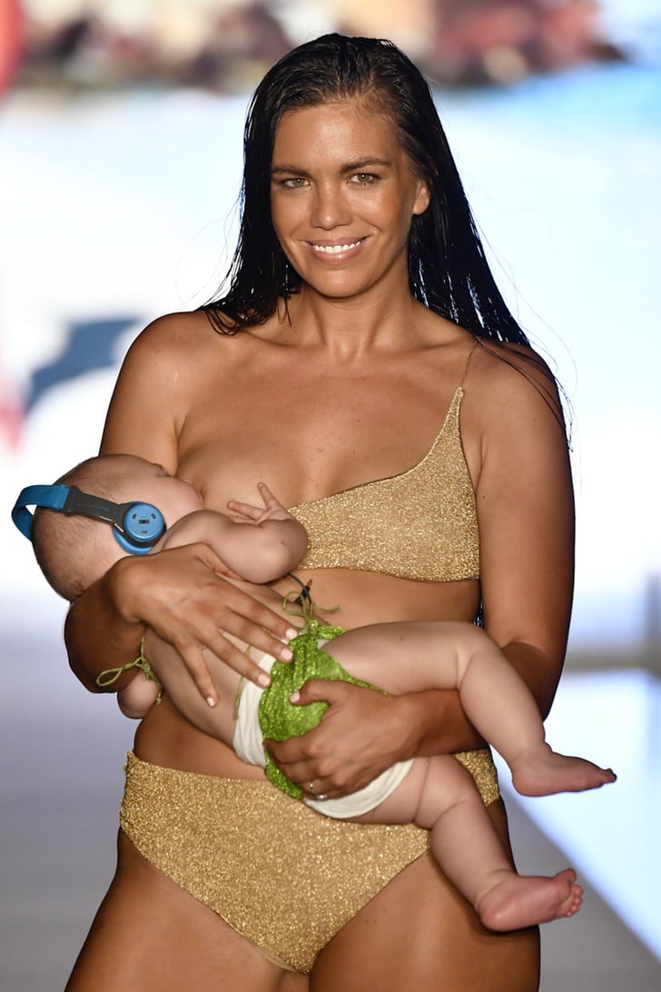Por ejemplo, recientemente en la Semana de la Moda de baño en Miami, la modelo Mara Martin, quien previamente ganó un concurso lanzado por la revista Sports Illustrated para participar ahí, desfiló por la pasarela amamantando a su bebé de cinco meses.