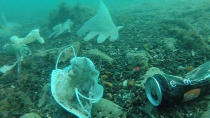 Un grupo ambientalista encontró dispersos en el fondo del mar Mediterráneo, diversos insumos utilizados durante la pandemia de coronavirus COVID-19.