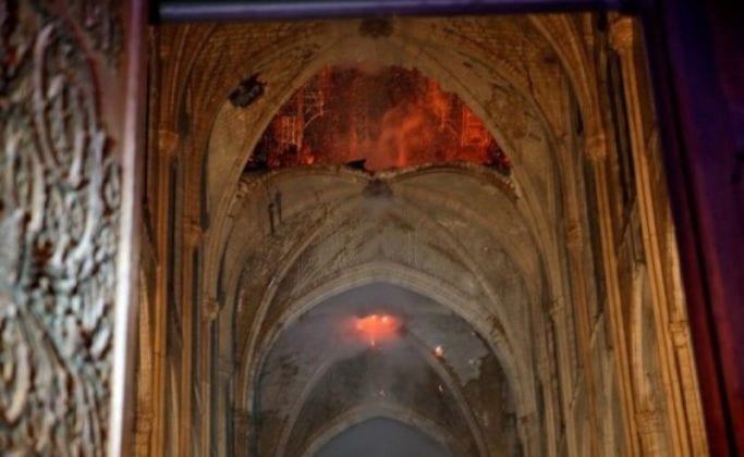 La agencia Reuters se encargó de difundir algunas imágenes del interior de la catedral, tras el terrible incendio que afectó gran parte de su estructura.