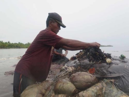 Encuentran ballena muerta con miles de residuos plásticos en su interior