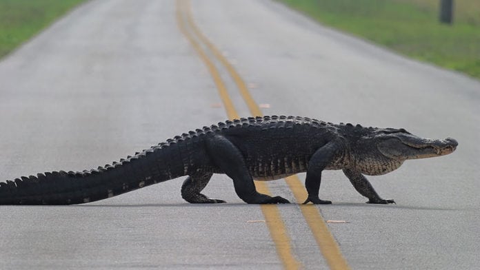 E.U.A.-El piloto de un avión procedente de Baltimore, tuvo que detener sus maniobras de aterrizaje ante el tranquilo caminar de un caimán, quien caminaba por en medio de la pista.