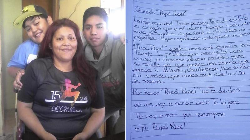 En la conmovedora carta a Santa Claus, el niño pidió una prótesis, para que su mamá vuelva a caminar, ya que Laura (de 36 años) sufre de artritis desde hace una década.