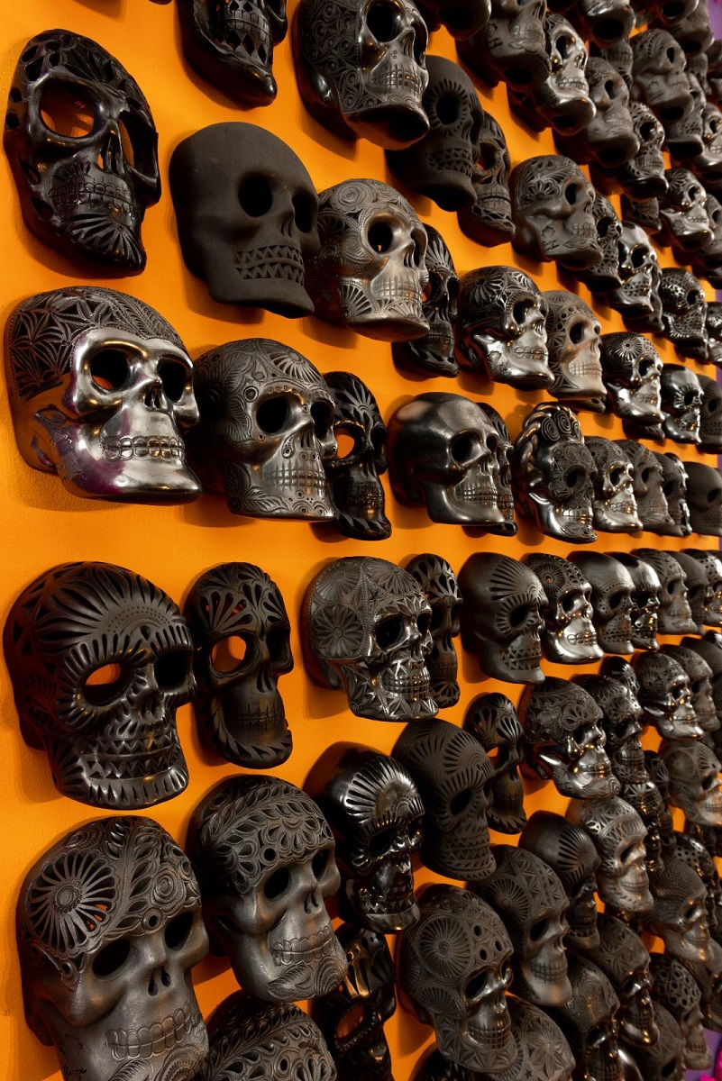 La tercera es un Tzompantli, que en náhuatl siginifica “hilera de cráneos” se construía por los mexicas para rendir culto a Huitzilopochtli, dios del sol y la guerra. Se recrea en esta ocasión con 132 calaveras de barro negro, realizadas artesanalmente en el pueblo de San Bartolo Coyotepec, Oaxaca, por Omar Fabián, Felipe Fabián, Tierra Lumbre y Artesanías Simón.