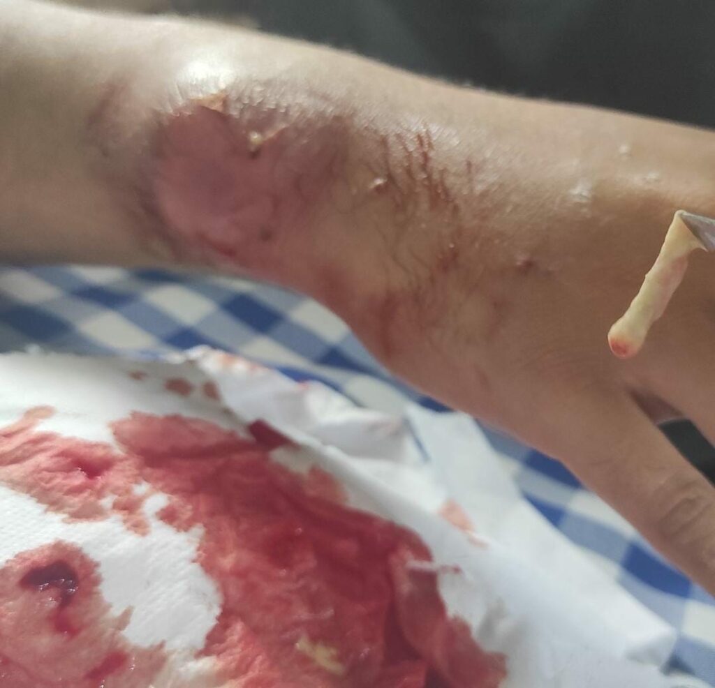 Así lucía el brazo de este chico con el absceso ya drenado. Pero ahí no se acabó el problema.