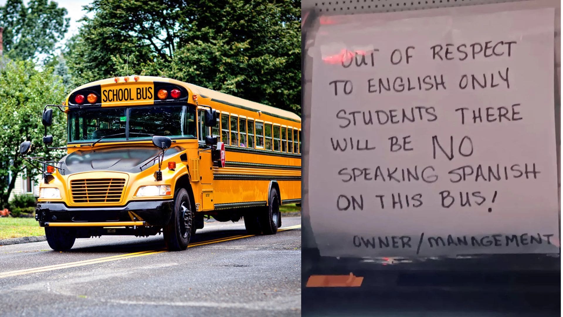“Por respeto a los estudiantes que solo hablan inglés, ¡no se hablará español en este autobús!”, se leía en el cartel que era firmado por el dueño o la administración.