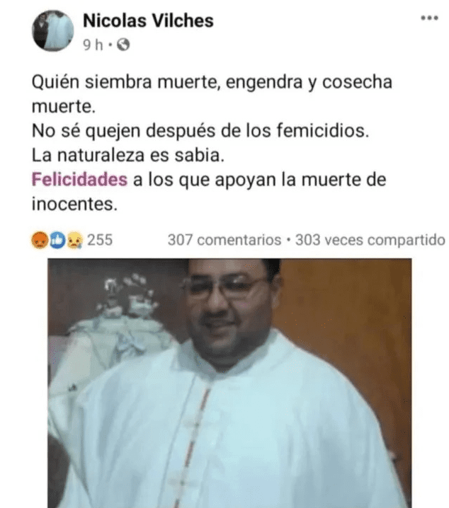 Se trata del presbítero Nicolás Vilches, quien se dijo estar del lado de los “provida” y realizó un comentario en su cuenta de Facebook que desató un gran problema.