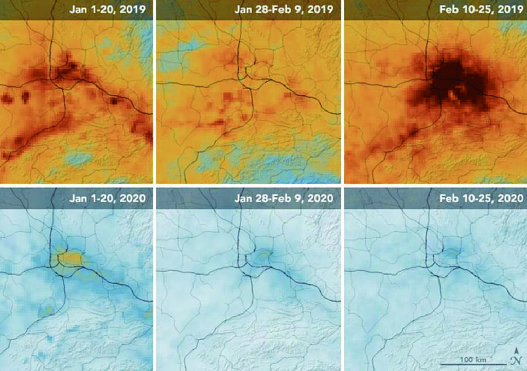 Los satélites de observación de la agencia espacial de Estados Unidos, la NASA, y la Agencia Espacial Europea (ESA) han detectado disminuciones significativas en la polución del dióxido de nitrógeno en China, al menos en parte, debido a la desaceleración económica provocada por la epidemia de coronavirus.