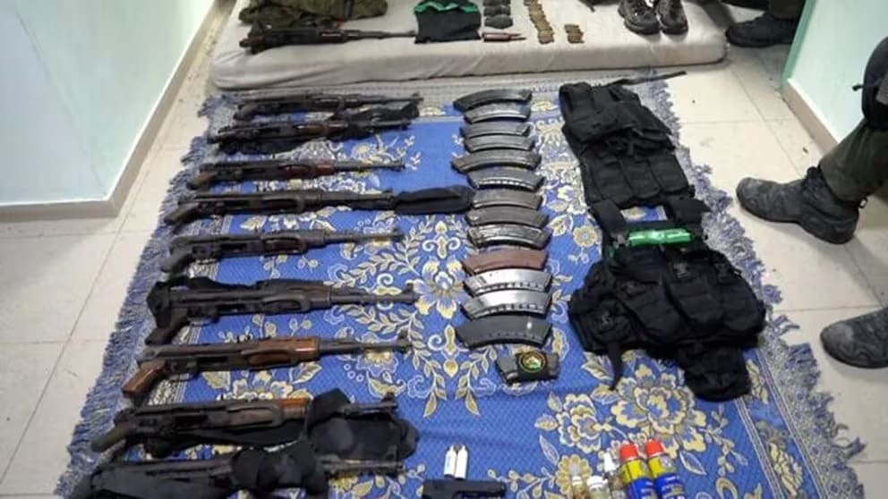 El Ejército israelí divulgó fotos y videos de varios fusiles de asalto, granadas y otros equipos militares.