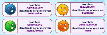 - Alpha (B.1.1.7) Identificada por primera vez en septiembre de 2020 en Reino Unido