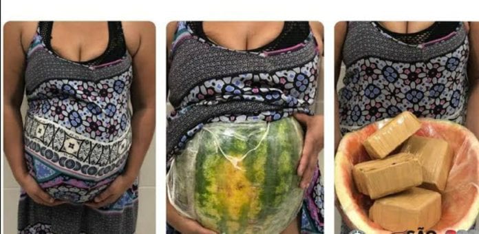 El vientre de la “futura madre” estaba formado por la corteza de una sandía. Su ingenio hizo que la detención se volviera viral.