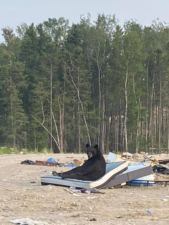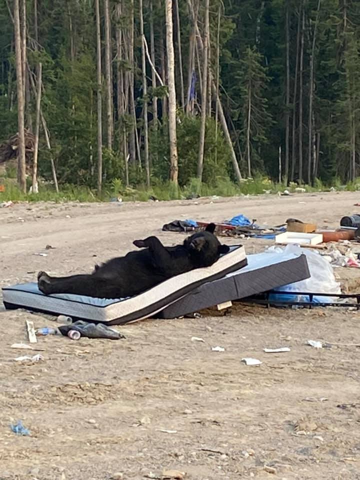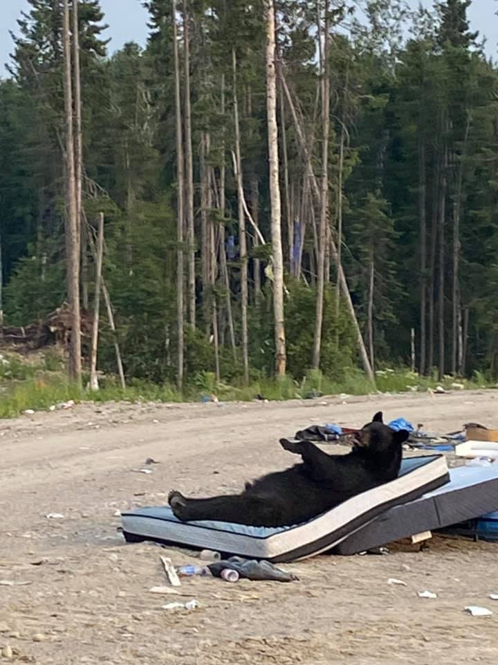 Canadá.-Un oso fue captado en fotografías mientras dormía en un colchón abandonado en un basurero; lucía tan tierno que de inmediato se hizo viral.