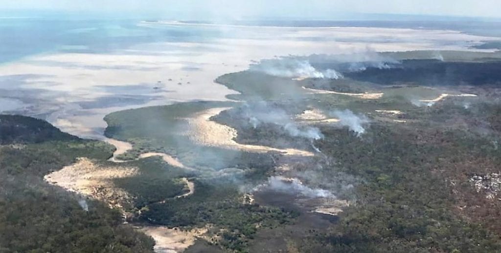 “17 aeronaves, incluido un gran avión de carga, han dejado caer al menos un millón de litros de agua (991.000 litros para ser exactos) en la isla”, indicaron los Servicios de Bomberos y Emergencia de Queenslad en su cuenta de Facebook.