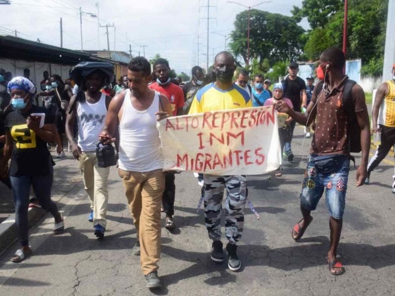 Los migrantes haitianos, acompañados de activistas, se manifestaron por las calles de la ciudad de Tapachula y afuera de la estación migratoria de México.