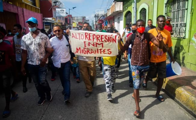 Los migrantes haitianos, acompañados de activistas, se manifestaron por las calles de la ciudad de Tapachula y afuera de la estación migratoria de México.