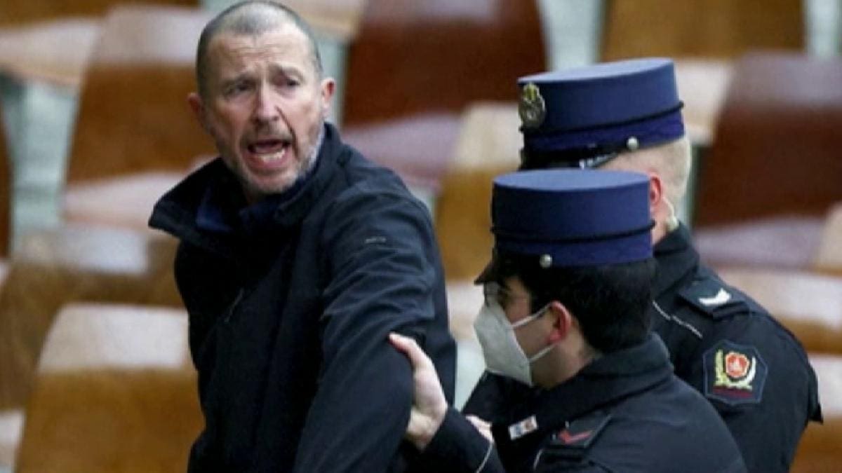 Finalmente fue acompañado afuera de la sala sin mostrar resistencia por miembros de la Gendarmería vaticana.