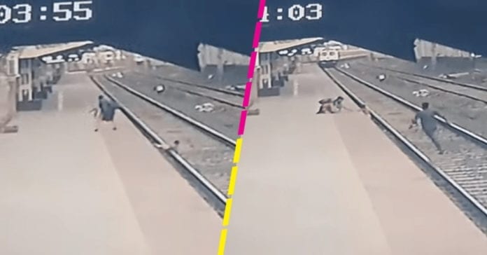 En las imágenes de una cámara de vigilancia compartidas por Indian Railways, se alcanza a observar que un tren se acercaba a toda marcha justo cuando el pequeño tropezó. La mujer no podía acercarse para intentar subir al chico y este último tampoco podía trepar al andén.