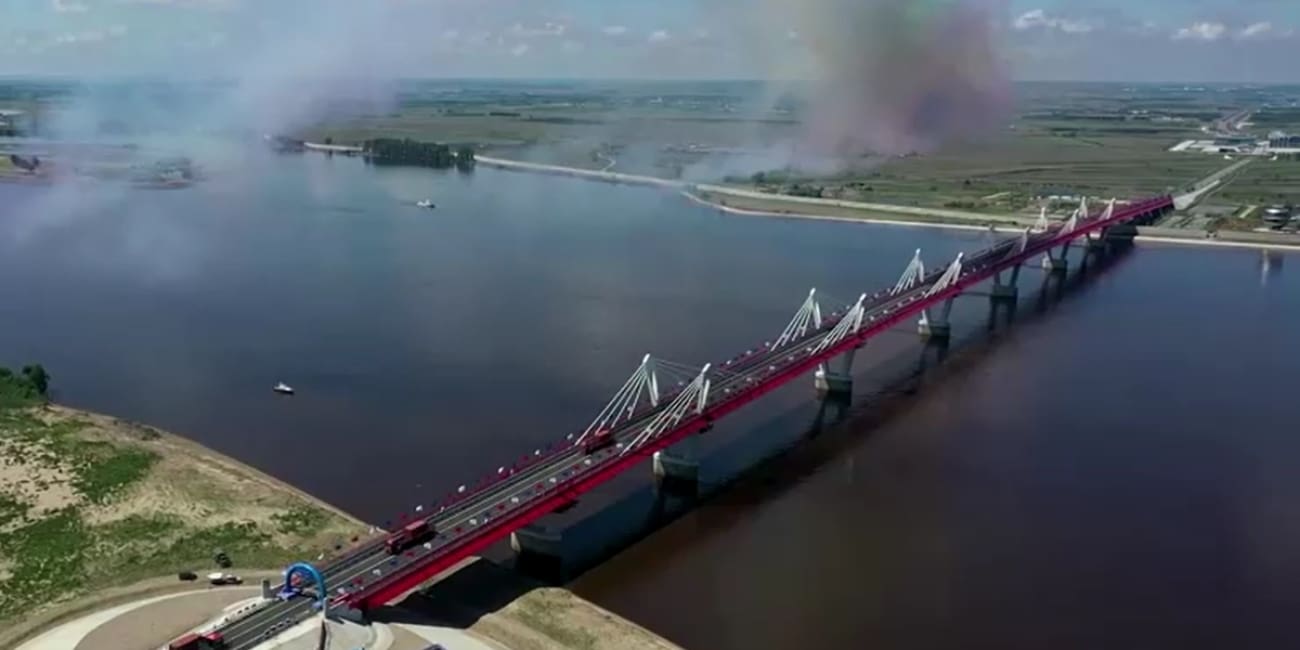 El puente había estado en construcción desde 2016, costó 19 mil millones de rublos, unos 343 millones de dólares. y se completó en mayo de 2020, aunque su apertura se retrasó debido a las restricciones transfronterizas de Covid-19.