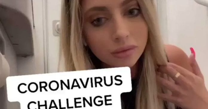 A esta joven de nombre Ava Louise se le ocurrió grabarse en el pleno baño de un avión y decidió lanzar un reto en su cuenta de Tik Tok, al que ella misma llamó el “coronavirus challenge”.