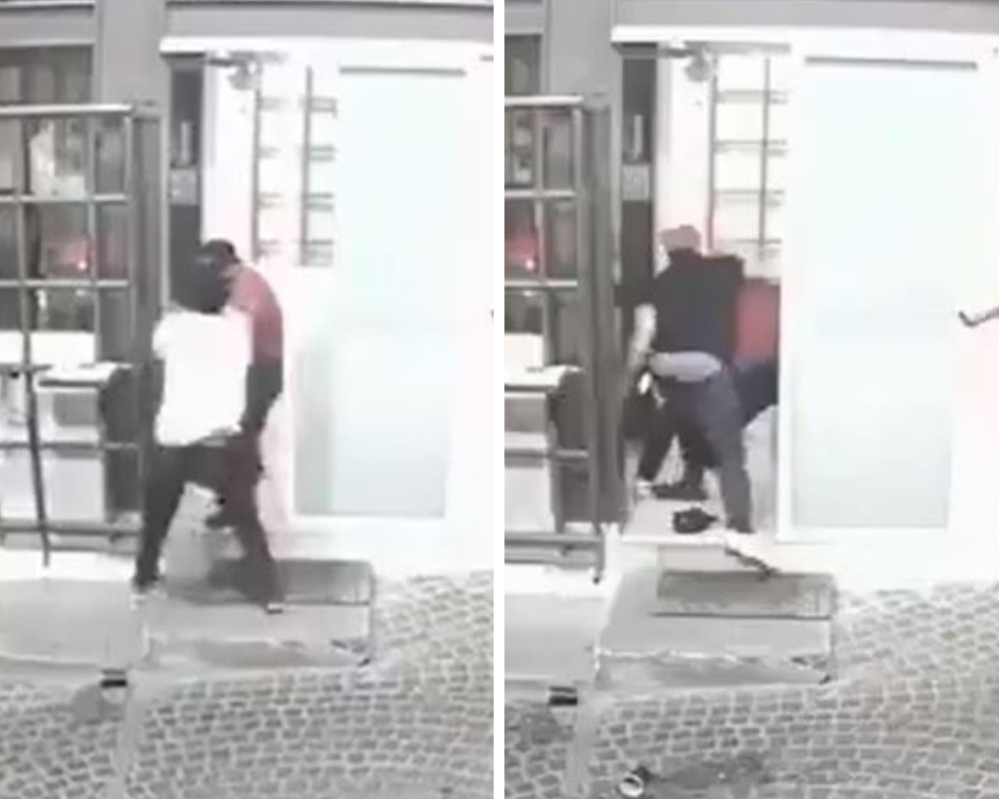 Se ve cómo la persona de la tercera edad estaba trabajando como guardia de seguridad en un fraccionaiento, de pronto dos hombres se aparecieron y empezaron a atacarlo, todo quedó grabado en las cámaras de seguridad.