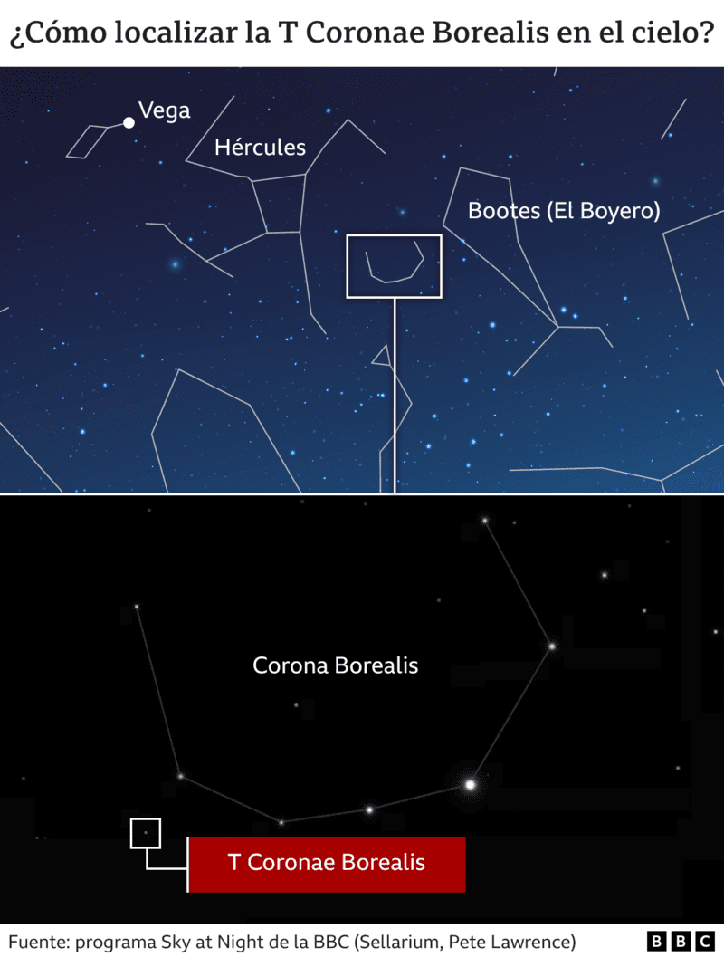 Situada a 3.000 años luz de la Tierra, la Corona Borealis alberga una estrella enana blanca llamada T Coronae Borealis (o T CrB, para abreviar) que está al borde de lo que, según la NASA, será una espectacular y excepcional explosión de una nova.