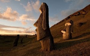 Probablemente son los más famosos y fascinantes misterios del planeta, estas figuras monolíticas gigantes adornan la isla de la Polinesia a 3.500 kilómetros de distancia de la costa de Chile. Conocidas como Moai por el pueblo rapanui que las construyó hace más de 700 años, se cree que las cerca de 900 estatuas representan antepasados difuntos o jefes muy importantes. Sus leyendas hablan de los Moai caminando a sus destinos, inspirados por el poder divino.