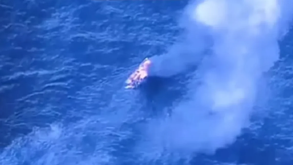 El funcionario difundió un video donde se observa el momento en que la embarcación es alcanzada por el misil y queda en llamas.