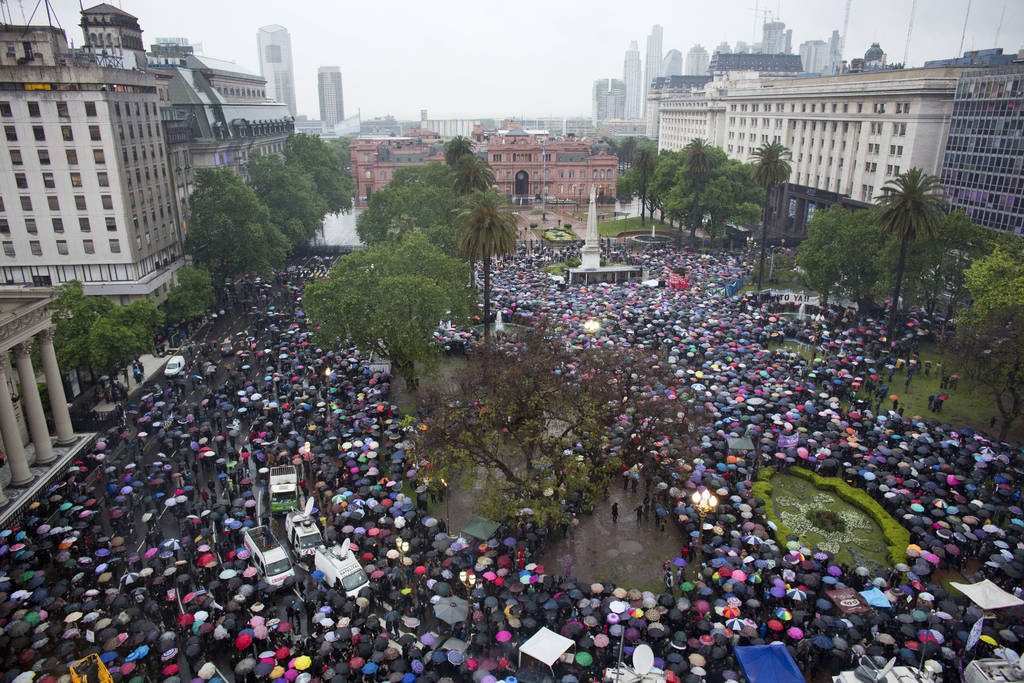 Antes, ayer a las 13.00 hora local, y en una jornada con una intensa lluvia y viento en la capital argentina, la misma plataforma llamó a cesar actividades en los trabajos, y acompañar este paro de un ‘ruidazo’, cuelgue de banderas y salida a la puerta de los lugares de trabajo y/o estudio.