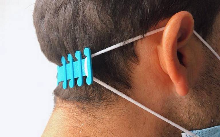 En tiempos de uso constante de mascarillas, Mateo sufría como muchos de nosotros dolor de orejas por la goma trasera después de pasar ocho horas en clase con ella puesta, así que fabricó, gracias a su impresora 3D, un extensor que suaviza esa presión.