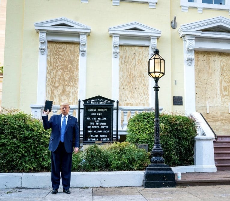 Hay que recordar que el sótano de Saint John ardió en las revueltas del domingo por la muerte de George Floyd, y Trump decidió fotografiarse a las puertas del templo sujetando una Biblia en la mano, antes de regresar a su residencia. Fue ahí donde dijo, era el presidente de “la ley y el orden”.