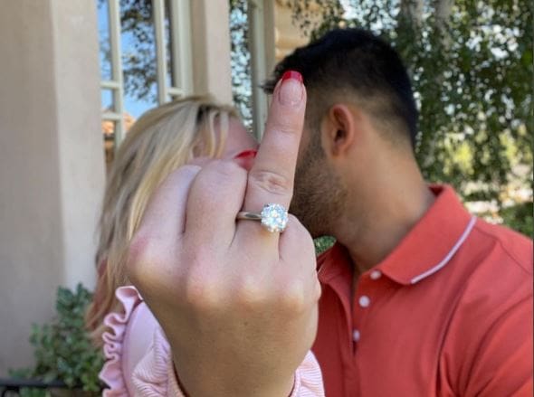 Por su parte, su ahora prometido compartió una foto en donde la cantante hace la “Britney señal” mostrando su lujoso anillo.