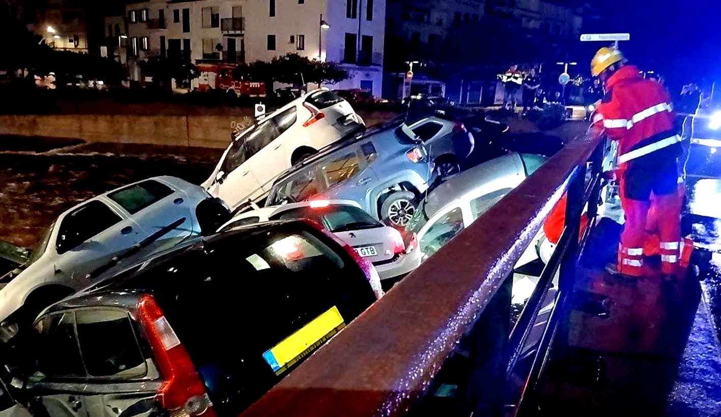 Hasta 32 autos de Cadaqués (Girona) se han visto afectados por las lluvias del viernes al ser arrastrados por un río que atraviesa el municipio. De momento, no hay aviso de víctimas arrastradas por la corriente ni dentro de los vehículos, que quedaron uno sobre otro.
