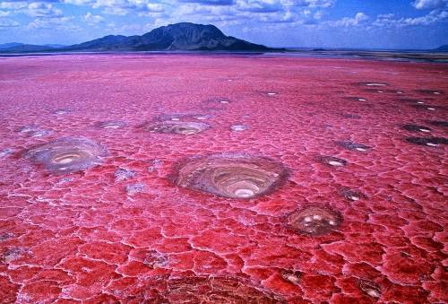 Situado en Tanzania, un lago de agua salada sin salida al mar da origen a las leyendas donde sus aguas tienen la propiedad de petrificar a los animales. En realidad, lo que ocurre es que están rebosantes de carbonato sódico, un compuesto químico que proviene de un volcán cercano.