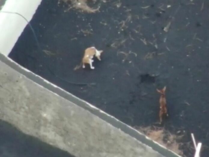 Los perritos atrapados en un islote en Todoque y rodeados de lava han desaparecido de los estanques, así lo informó la empresa de drones Aerocamaras, que se encargó de alimentarlos por varios días y que hoy serían rescatados.
