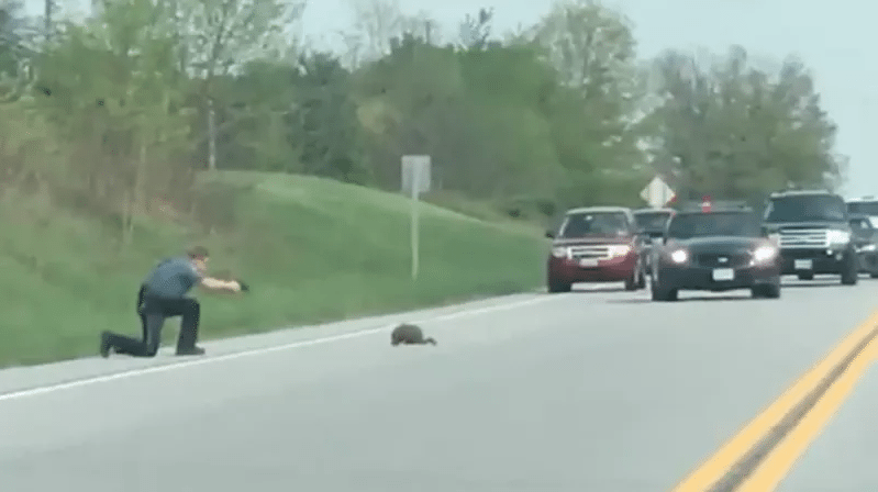 Un video subido a redes sociales muestra cómo un policía de Maryland, Estados Unidos, mata a tiros a una marmota que intentaba cruzar una carretera.