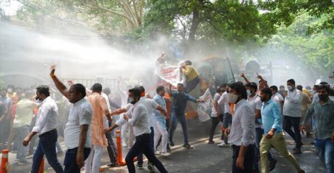 Al respecto, el jefe del BJP de Delhi, Adesh Gupta, indicó que los cañones se usaron contra los líderes del partido mientras protestaban frente a la residencia del ministro de Salud del estado, Satyendra Jain.