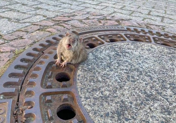 Vecinos de un pequeño pueblo alemán en Bensheim, solicitaron al cuerpo de emergencias de la ciudad rescatar a una rata gorda atorada entre los agujeros de la coladera.